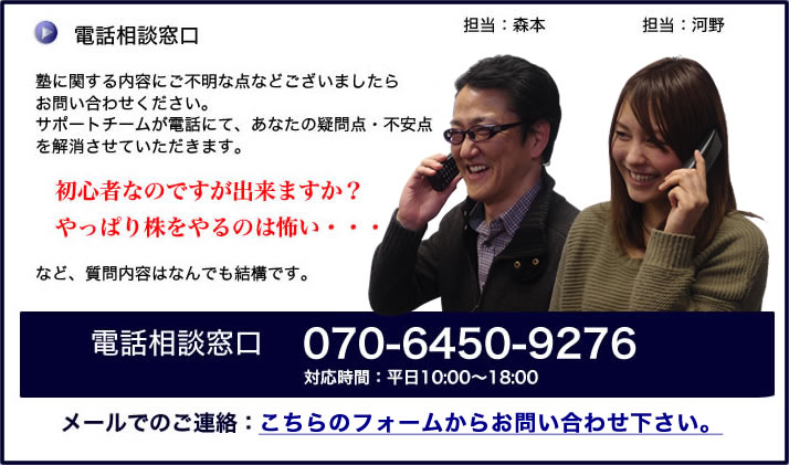 口座の開き方から注文の仕方、そして、利益を出すテクニックまで無理なく勉強していただける内容ですので大丈夫です。またテクニカルサポート付きですのでパソコンが苦手でも問題ございません。